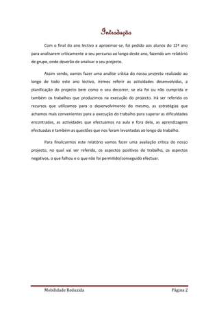 1) Os alunos analisaram criticamente seu projeto sobre mobilidade reduzida realizado ao longo do ano letivo.