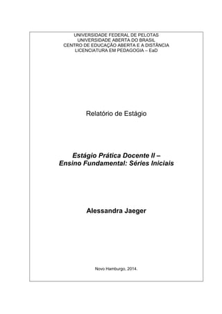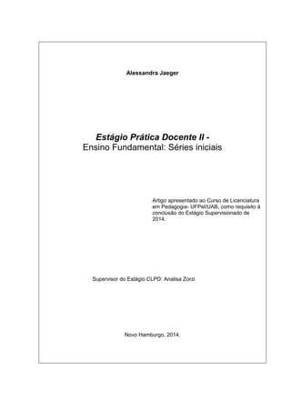 O documento apresenta um relatório de estágio realizado em uma turma do 1o ano do ensino fundamental de uma escola municipal. O relatório descreve o contexto da turma, as principais demandas observadas e como foram abordadas durante o estágio, como a falta de experiência prévia em educação infantil, dificuldades de rotina e convivência. Também explica como a Copa do Mundo foi usada como tema motivador para o planejamento de atividades que atendessem às necessidades identificadas e promovessem a aprendizagem dos alunos.