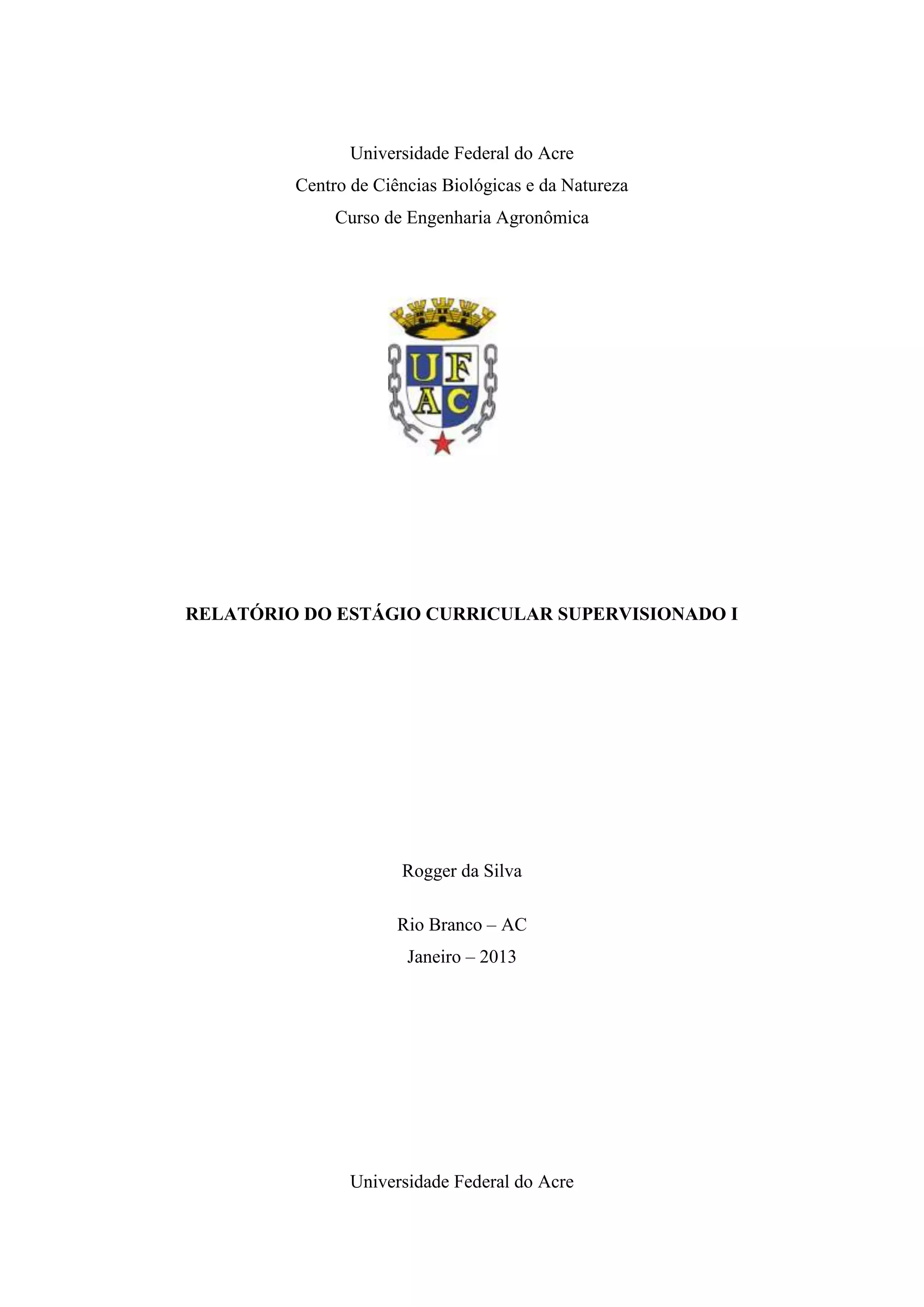 Rogger da Silva apresenta um relatório de estágio curricular supervisionado realizado na Universidade Federal do Acre entre janeiro e abril de 2013. O relatório descreve as atividades observadas e desenvolvidas na Unidade Demonstrativa de Leite durante o estágio.