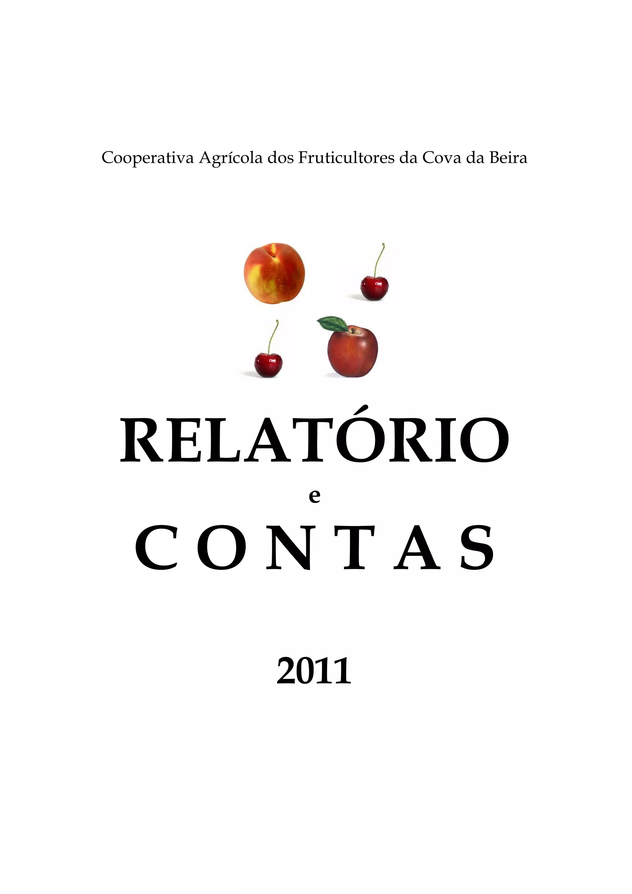 Este relatório e contas de 2011 da Cooperativa Agrícola dos Fruticultores da Cova da Beira descreve suas principais atividades, políticas contábeis e demonstrações financeiras. A cooperativa comercializa frutas produzidas por seus associados e fornece insumos agrícolas. Seus ativos incluem instalações para armazenamento e processamento de frutas e um armazém para insumos. Sua receita vem principalmente da venda de frutas para supermercados e atacadistas.