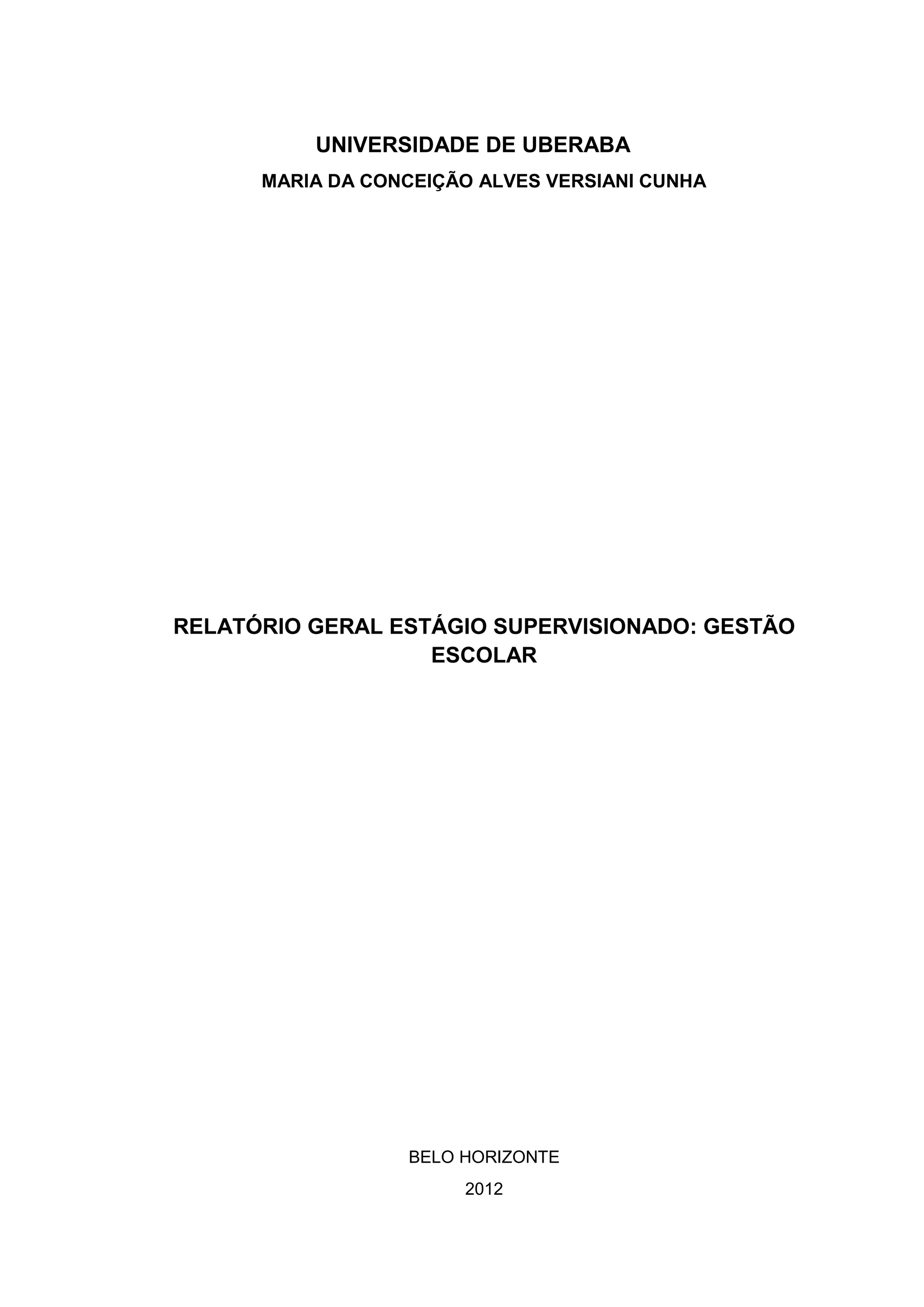 1. O documento é um relatório de estágio em gestão escolar realizado na Escola Municipal “Cláudio Pinheiro de Lima”.