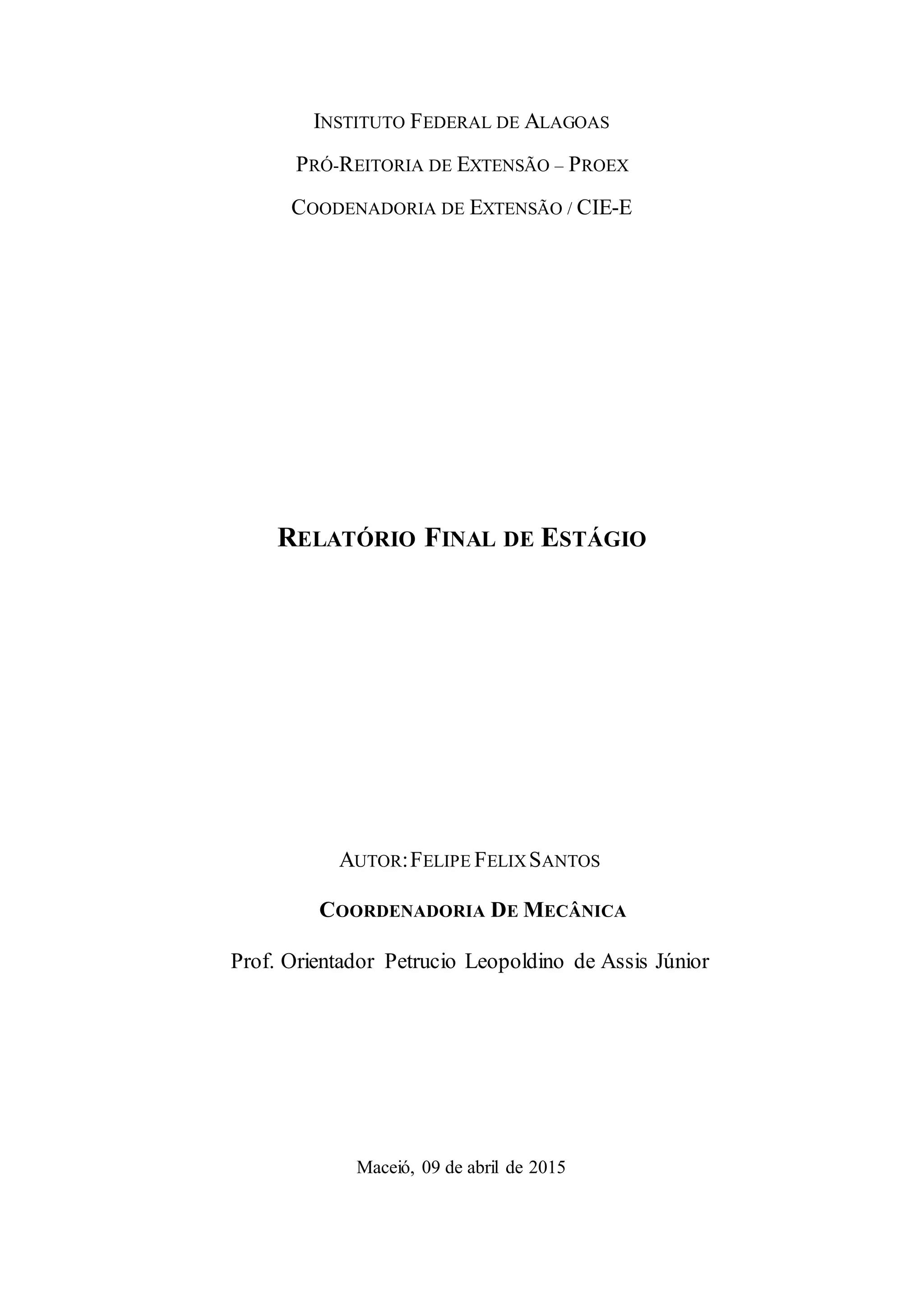 1) O relatório descreve as experiências do estágio de Felipe Felix Santos na área de manutenção industrial, operação, projeto e desenho mecânico na empresa Engequip Turbinas a Vapor LTDA.