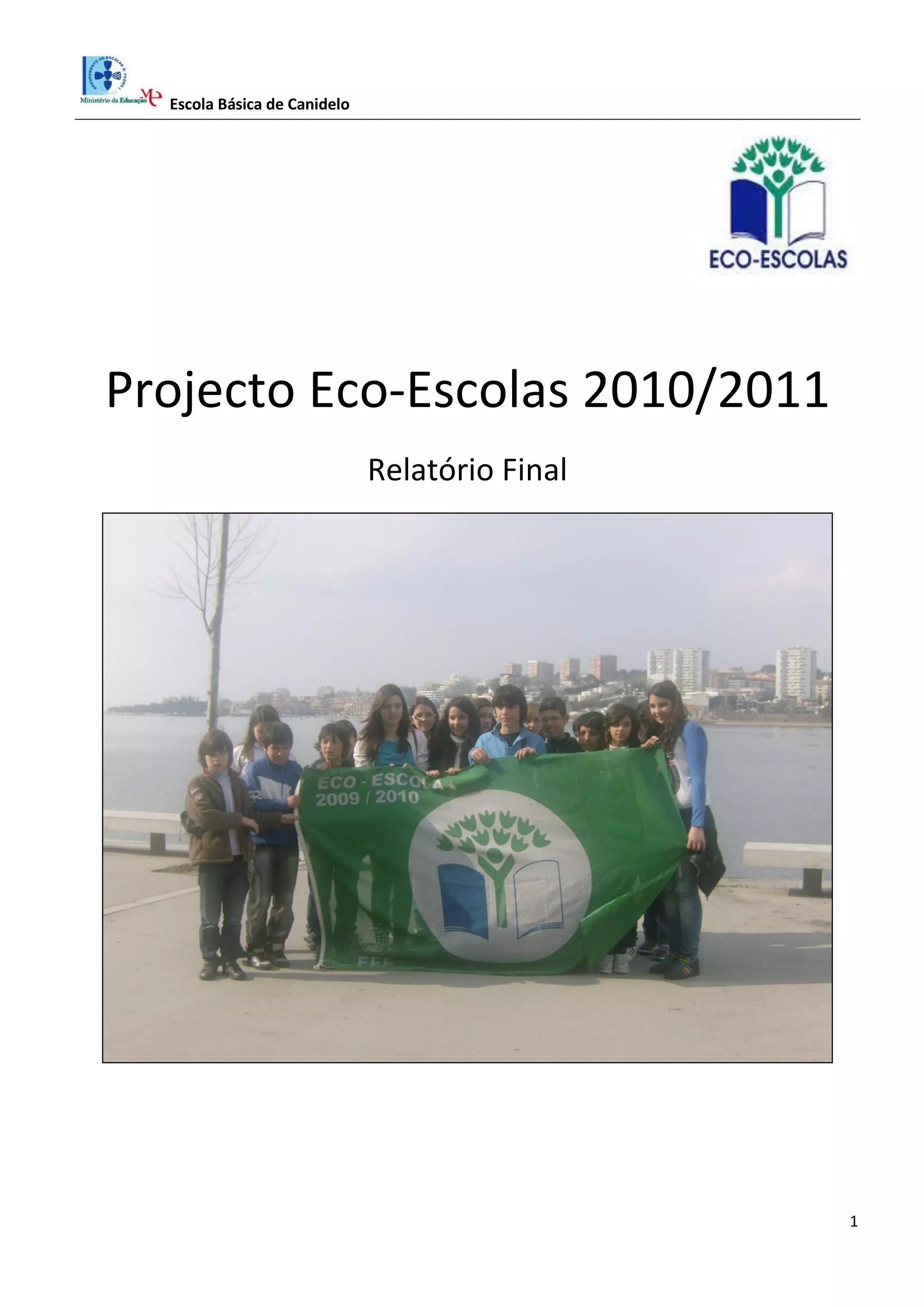 Este relatório final descreve as atividades realizadas pela Escola Básica de Canidelo no âmbito do seu projeto Eco-Escolas para 2010-2011. As atividades incluíram a plantação de árvores, exposições sobre biodiversidade, construção de habitats naturais, cuidados com animais, visitas de estudo sobre a água e resíduos, e iniciativas para promover a sustentabilidade na escola. O objetivo era sensibilizar a comunidade escolar para a importância de preservar o meio ambiente.