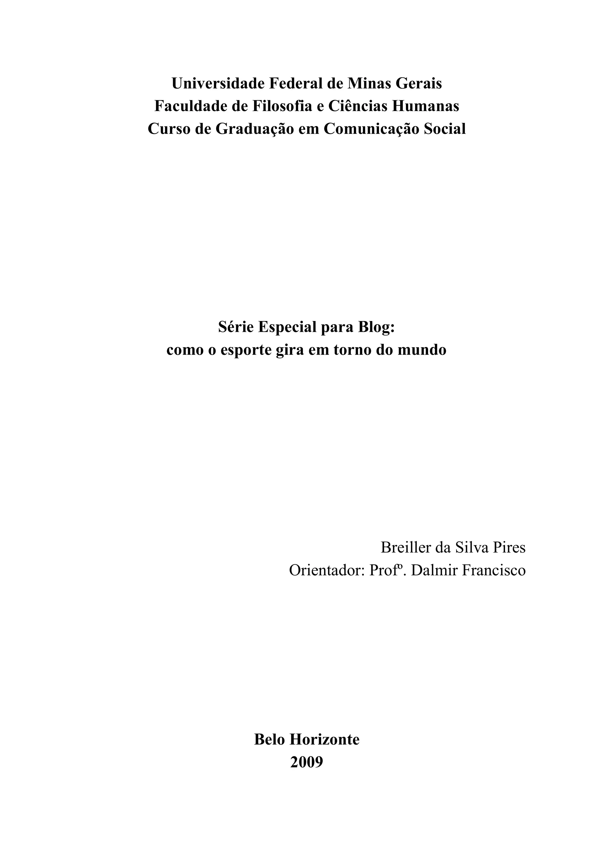 O documento relata um projeto de conclusão de curso sobre uma série de reportagens publicadas no blog Rola Blog, com o objetivo de explorar a relação do esporte com a sociedade. A série, intitulada 'Como o esporte gira em torno do mundo', propõe uma análise mais aprofundada do jornalismo esportivo, abordando temas como cultura, saúde, educação, economia, sociedade e política. O projeto visa contribuir para uma cobertura jornalística mais rica e interativa, utilizando as ferramentas da web e as interações nas mídias sociais.