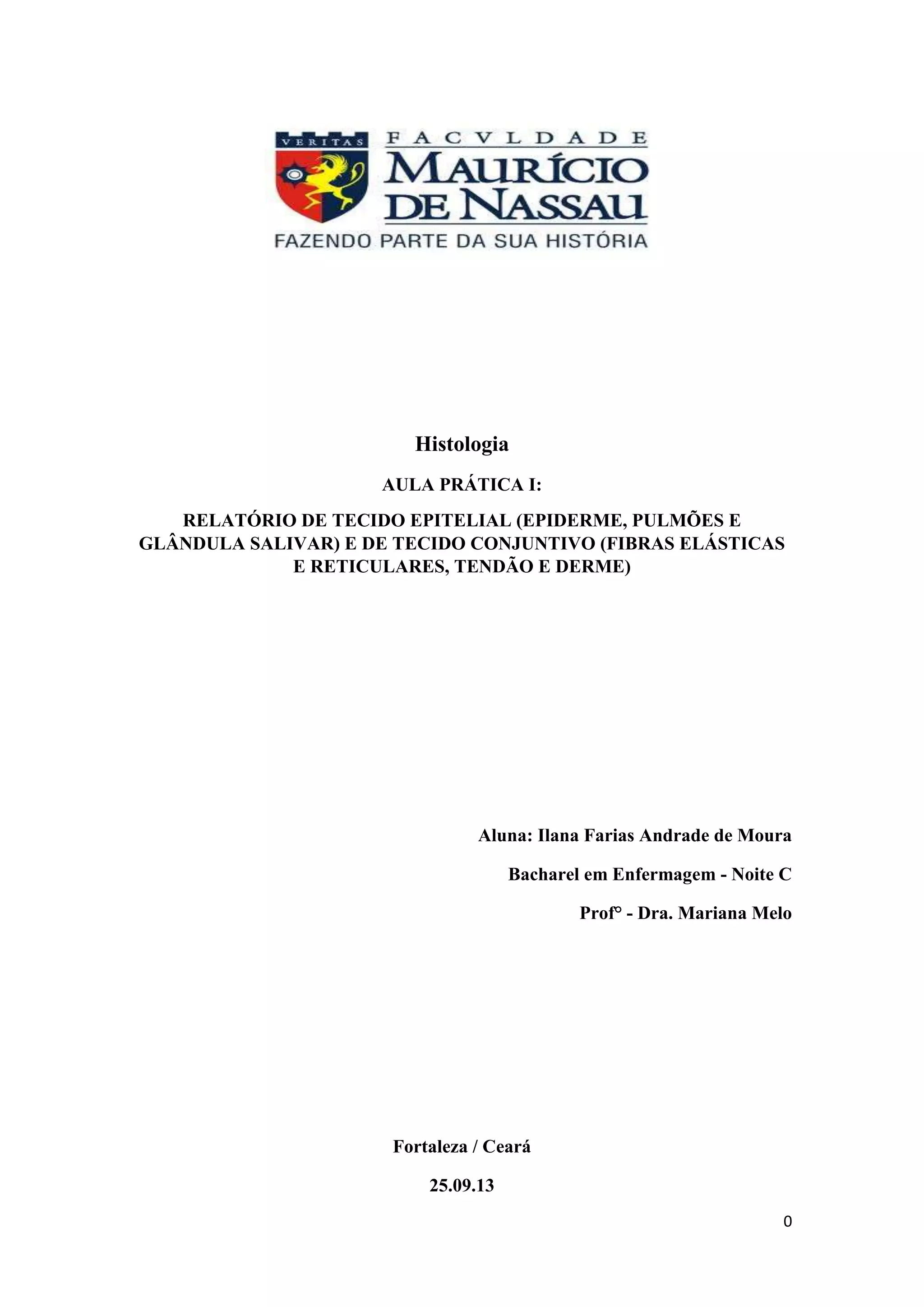O documento é um relatório prático sobre histologia focando nos tecidos epitelial e conjuntivo, abordando suas características, funções e observações microscópicas. Os principais tecidos discutidos incluem epiderme, pulmões, glândulas salivares e componentes do tecido conjuntivo como tendões e fibras elásticas. A metodologia envolveu a observação dos tecidos em lâminas sob microscópio, destacando as estruturas e funções específicas de cada um.