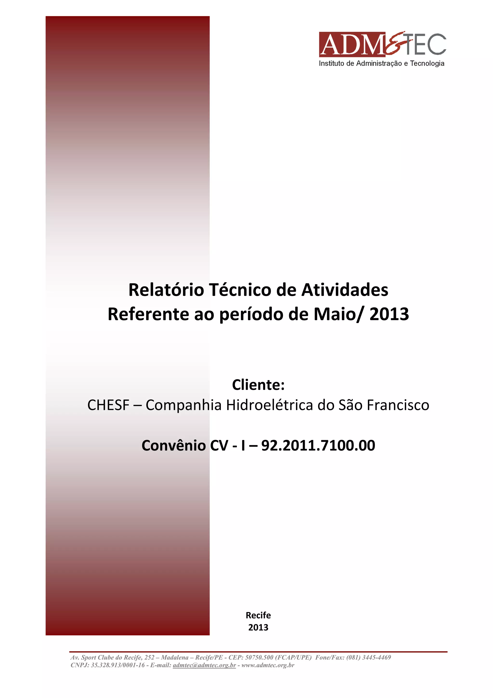 O relatório descreve as atividades realizadas em maio de 2013 no âmbito do projeto "Ventos da Mudança" incluindo a capacitação de facilitadores, inscrição de participantes, e articulações com parceiros para a capacitação em empreendedorismo na cidade de Casa Nova, BA.