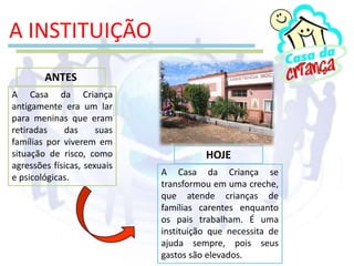 Este documento descreve uma ação de divulgação de um restaurante chamado Pequenos Chef's que doa todo o seu faturamento para uma instituição chamada Casa da Criança. Voluntários distribuíram panfletos sobre o restaurante na entrada de uma faculdade para aumentar a visibilidade do restaurante e consequentemente aumentar a renda da Casa da Criança. A ação atingiu um grande número de pessoas e levantou fundos para a instituição de caridade.