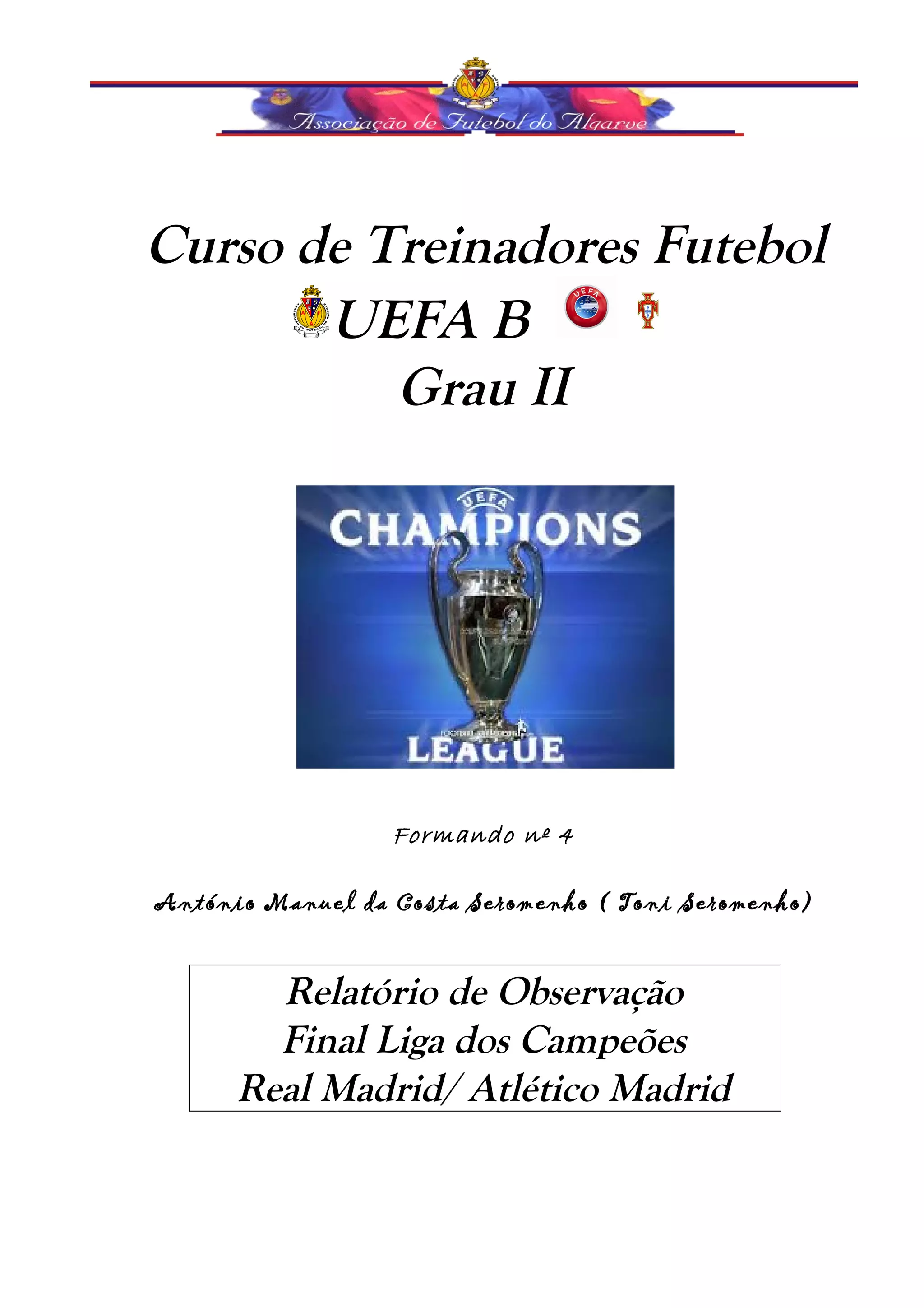 1) O documento relata a final da Liga dos Campeões entre Real Madrid e Atlético de Madrid em 2014.
