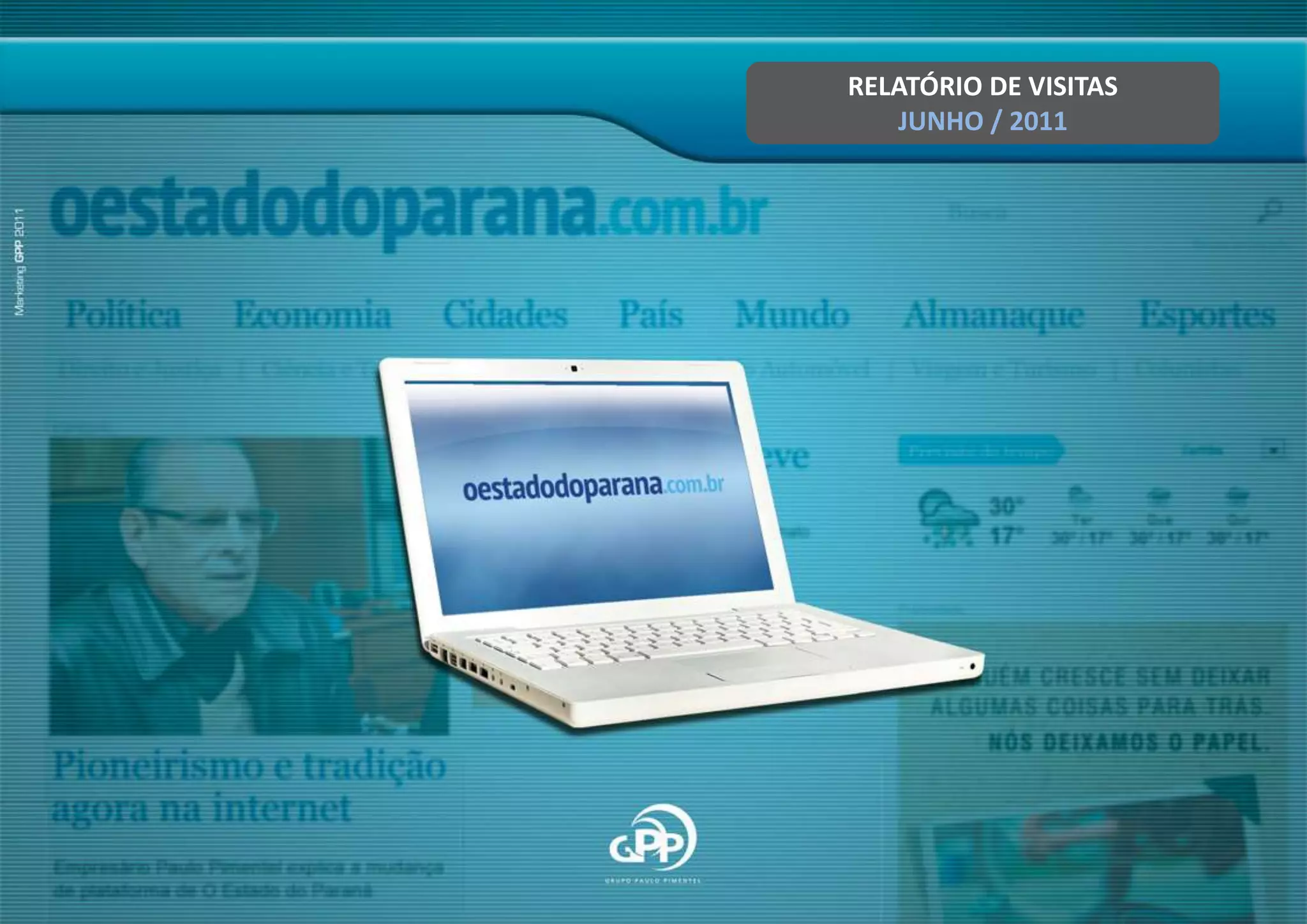 O relatório resume as visitas e o tráfego de um site em junho de 2011. O horário de maior audiência foi às 11h e o de menor às 4h. As notícias mais populares incluíram cidades, política, economia e almanaque. Projeções apontam o número estimado de impressões nos próximos 30 dias.