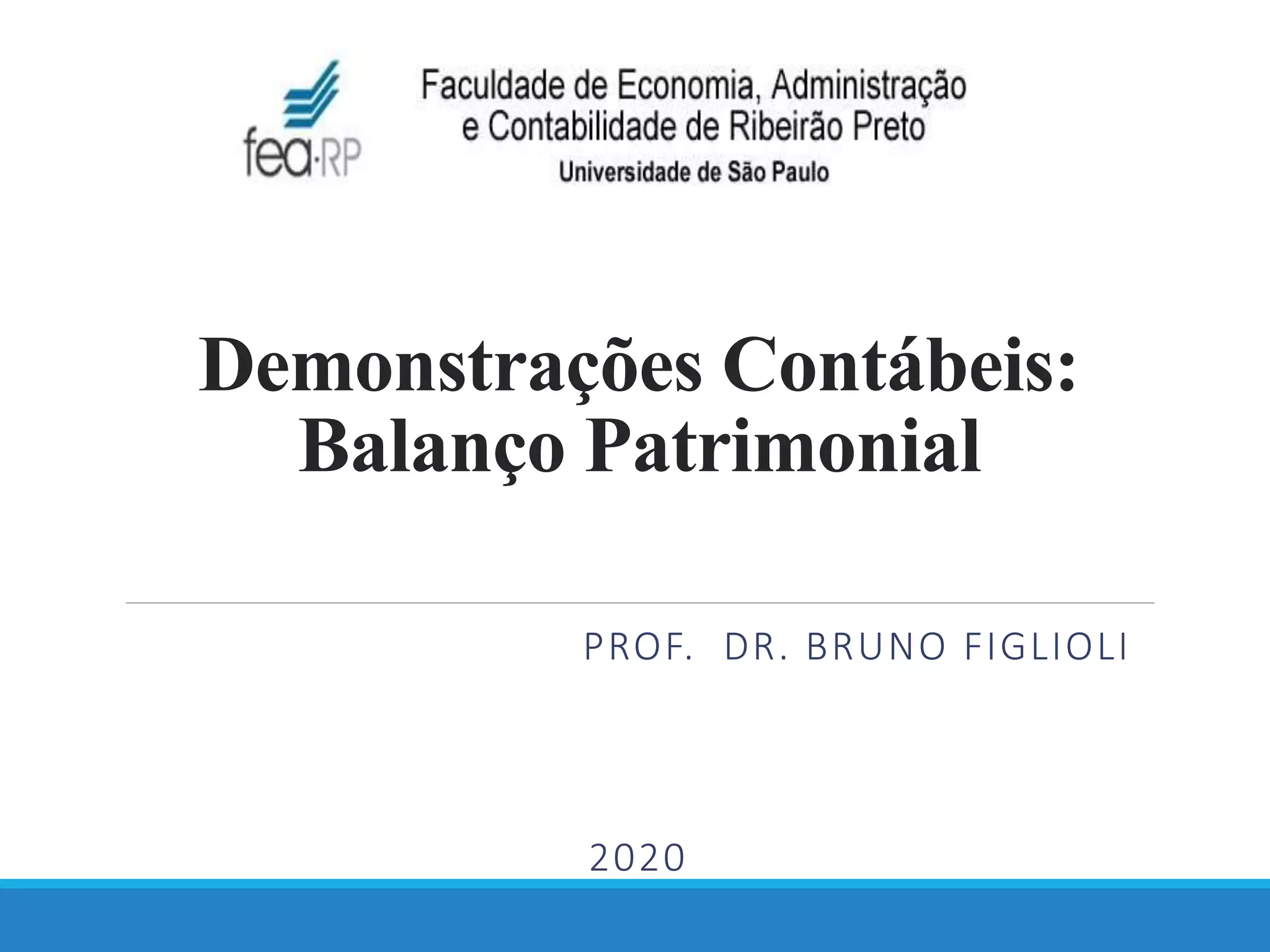 O documento descreve as principais características do Balanço Patrimonial, incluindo sua estrutura e composição. O Balanço Patrimonial relata a situação patrimonial e financeira da empresa em determinada data, dividindo os ativos entre circulante e não circulante e apresentando as fontes de recursos entre passivo, circulante, não circulante e patrimônio líquido.