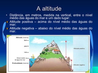 1. O documento descreve as principais formas de relevo terrestre, incluindo montanhas, planaltos, colinas e vales.