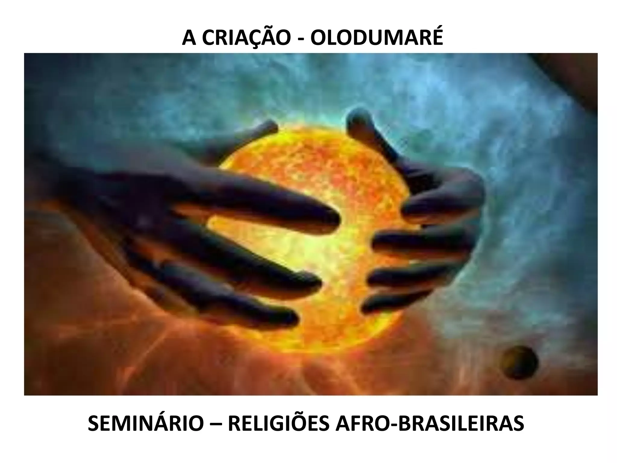 O documento discute a criação do mundo segundo a religião afro-brasileira do Candomblé. Em três frases: