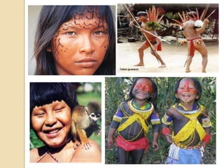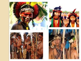 O documento descreve as religiões indígenas no Brasil, incluindo suas origens, ensinamentos principais, figuras religiosas importantes como xamãs e pajés, a transmissão oral de mitos e histórias sagradas, e a importância da preservação cultural frente à ameaça do etnocídio.