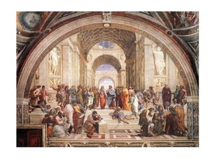 O documento descreve o período do Renascimento na Europa entre 1300-1650 d.C., marcado pela valorização do ser humano e da cultura greco-romana. As artes floresceram com novos estilos em pintura, escultura e arquitetura influenciados pelos ideais humanistas e de racionalidade científica da época. Artistas renomados como Leonardo da Vinci, Michelangelo, Rafael e Botticelli se destacaram nesse período.