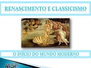 1) O documento discute o Renascimento em Portugal, que começou a se manifestar no século 15 com uma mentalidade mais laica e antropocêntrica, influenciada pelo Renascimento na Itália.