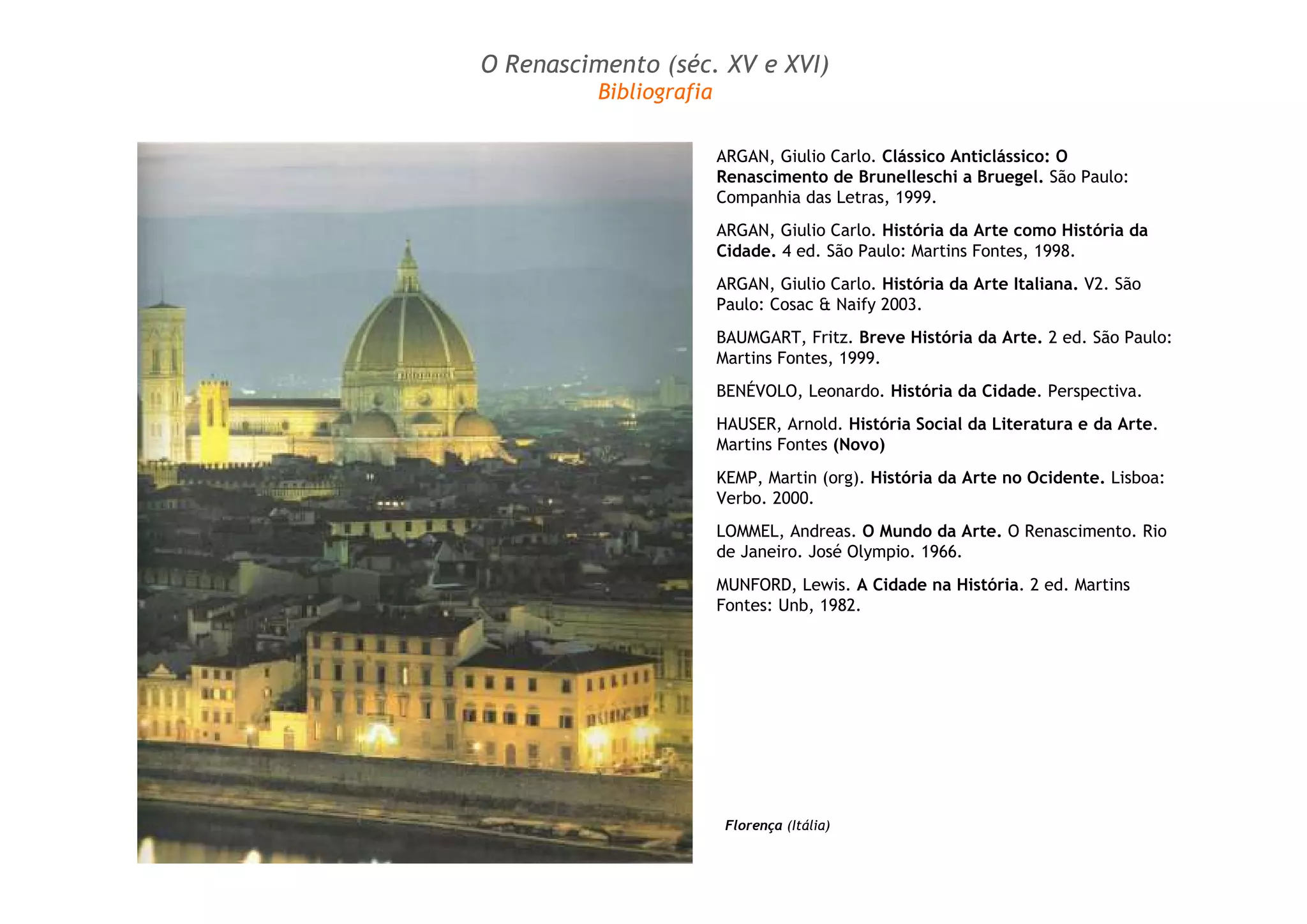 1) O documento resume o período do Renascimento nos séculos XV e XVI na Itália, com foco na região da Toscana.