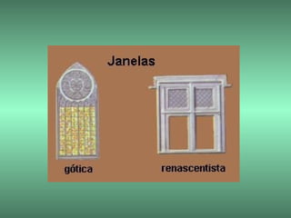 1) O documento resume as principais características artísticas do período do Renascimento na Europa, como a arquitetura inspirada na Grécia e Roma antigas, a escultura realista e a pintura usando perspectiva e claro-escuro.