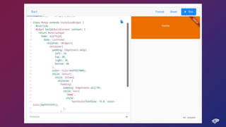Este documento discute a arquitetura de um ecossistema que renderiza widgets Flutter dinamicamente a partir de dados JSON armazenados externamente. Ele explora como Flutter, Adonis.js e bancos de dados como SQLite podem ser usados para criar, armazenar e gerenciar JSONs, enquanto um dashboard Angular exibe e edita os dados.