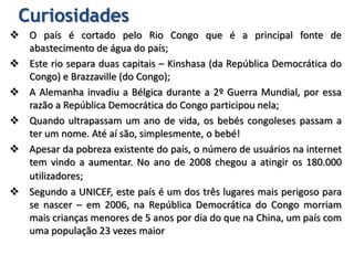 A República Democrática do Congo é um dos maiores países da África localizado no centro-sul do continente. O país tem sofrido com conflitos armados e violência desde 1996 que levaram à morte de milhões de pessoas e à fome generalizada. Apesar de rico em recursos naturais, o país enfrenta altos níveis de pobreza e baixos índices de desenvolvimento humano.