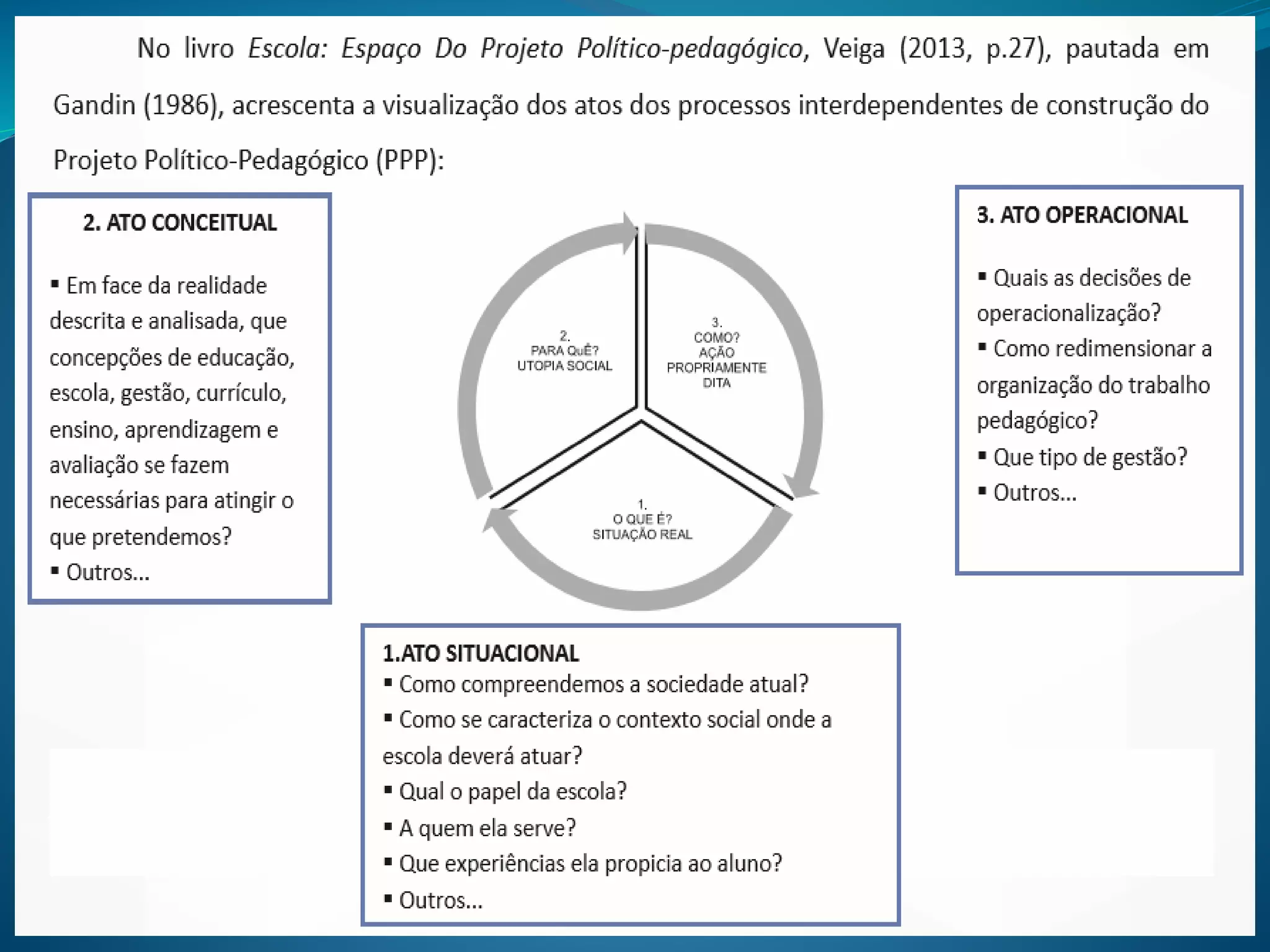 Pedagógico, no sentido de se definir as ações educativas e as
