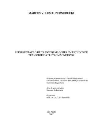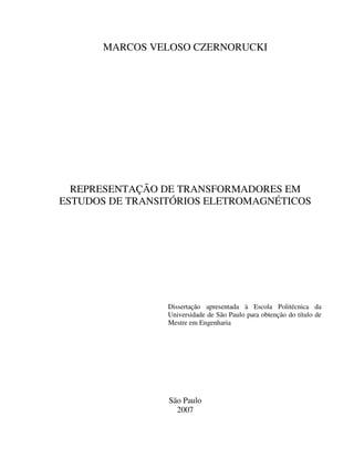 Este documento apresenta uma dissertação de mestrado sobre a representação de transformadores em estudos de transitórios eletromagnéticos. O trabalho propõe modelos para transformadores monofásicos e trifásicos que incluem o ramo de magnetização, validados através de simulações no ATPDraw.