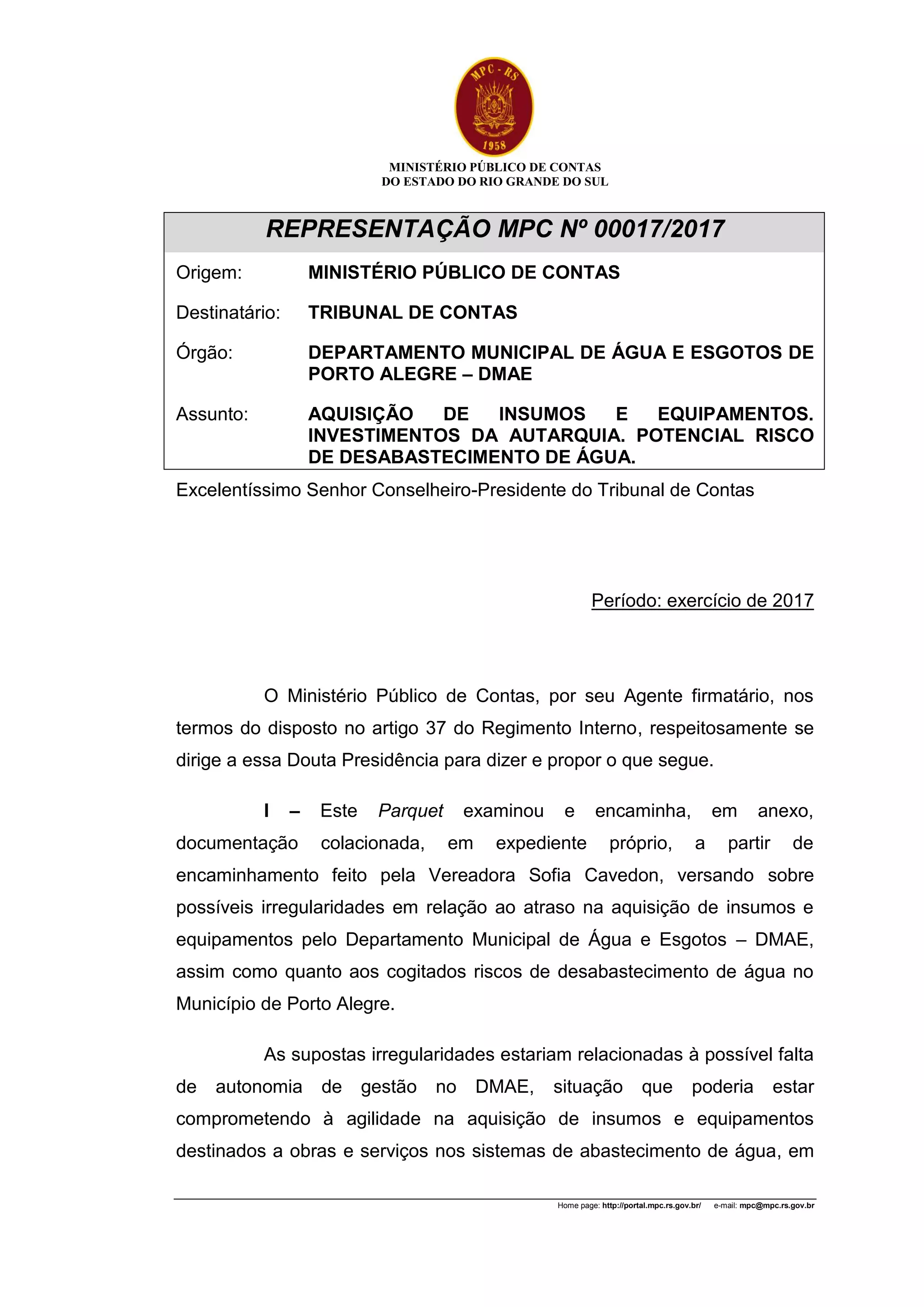 O Ministério Público de Contas do Estado do Rio Grande do Sul investiga atrasos na aquisição de insumos e equipamentos no Departamento Municipal de Água e Esgotos (DMAE) de Porto Alegre, que podem levar a um desabastecimento de água no município. A administração municipal perdeu a autonomia na gestão do DMAE, resultando em dificuldades na compra de materiais e exacerbando a situação de abastecimento. Um procedimento de fiscalização será instaurado para examinar essas questões e suas implicações na gestão pública.