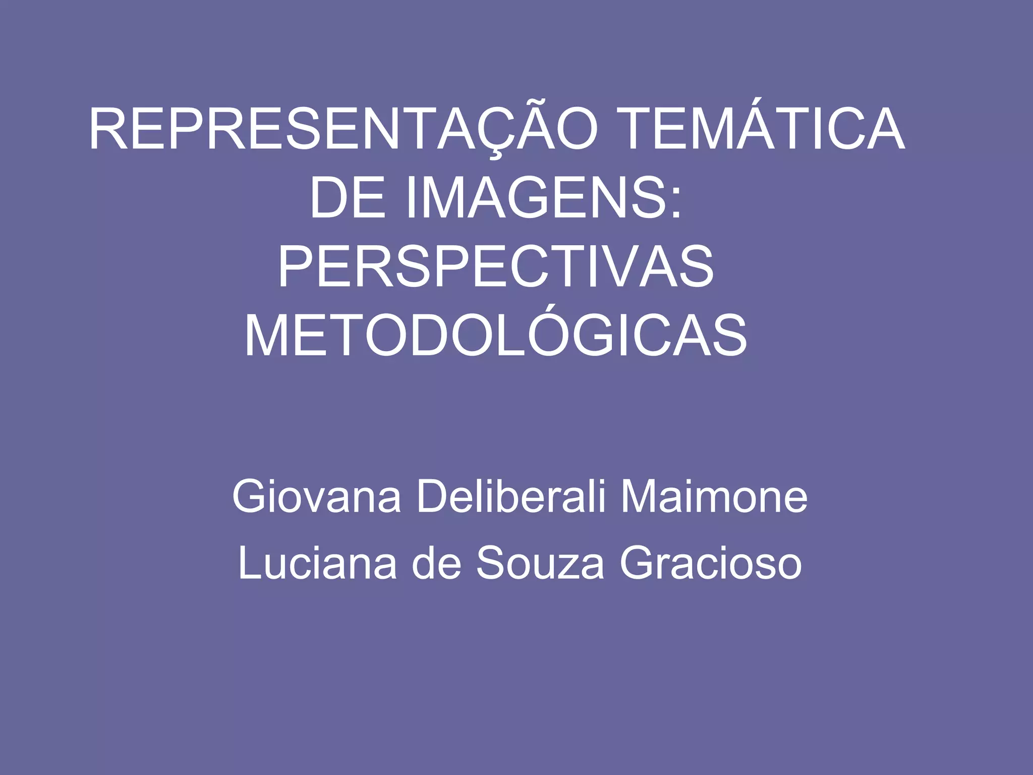 O documento discute metodologias para representação temática de imagens, especialmente pinturas. Ele identifica e analisa abordagens que permitem descrever o conteúdo e significado de obras visuais de forma concisa. A metodologia de Manini, que utiliza termos como "Quem/o que", "Quando", "Como" e "Onde", é aplicada para analisar uma pintura de Salvador Dali.