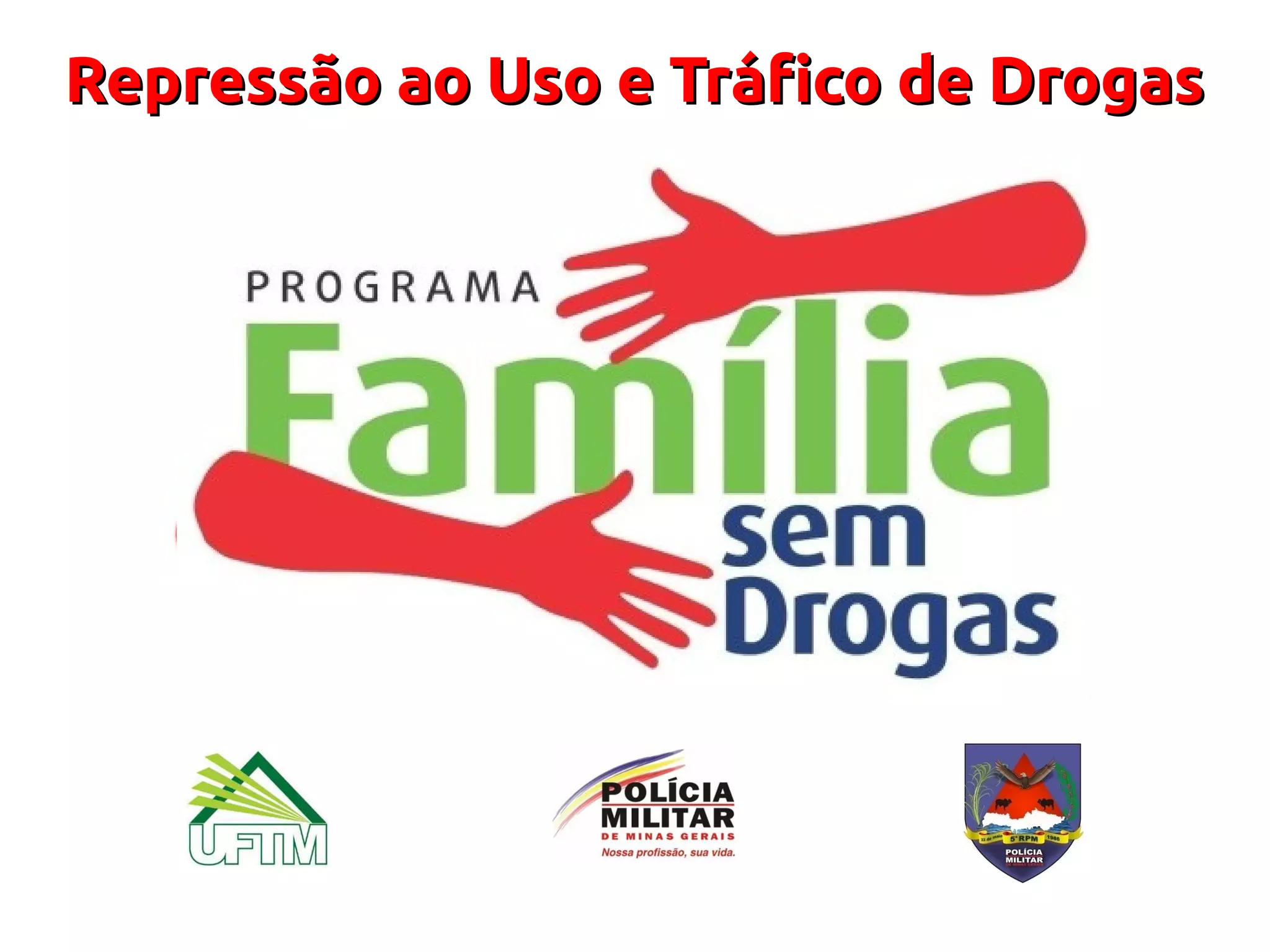 O documento discute a repressão ao uso e tráfico de drogas no Brasil. Apresenta os objetivos da repressão, os mecanismos adotados pelo Estado, as consequências jurídicas para usuários e traficantes, e explica conceitos como drogas lícitas e ilícitas.