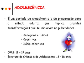 O documento descreve as transformações físicas e hormonais que ocorrem na puberdade e adolescência, levando à capacidade reprodutiva. Detalha os sistemas reprodutores masculino e feminino, o processo de fecundação onde o óvulo e espermatozóide se unem para formar um zigoto, e o desenvolvimento inicial do embrião com a formação da placenta e cordão umbilical até o nascimento.