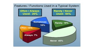 O documento discute métodos para validar hipóteses de requisitos de produtos, como pretótipos, páginas de destino e turcos mecânicos. Ele enfatiza a importância de testar suposições antes de construir um produto para garantir que esteja sendo desenvolvido o produto certo. O autor também fornece recursos adicionais sobre como elaborar melhores hipóteses.