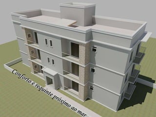 O documento apresenta um plano de planta baixa de um balneário em Santa Catarina, indicando a localização de um restaurante e pizzaria próximos à praia e fornecendo os créditos do arquiteto, construtora e imobiliária envolvidos no projeto.