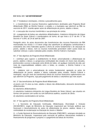 Este documento estabelece orientações, critérios e procedimentos para a transferência de recursos financeiros e pagamento de bolsas no âmbito do Programa Brasil Alfabetizado em 2011, definindo seus objetivos, beneficiários, agentes e respectivas responsabilidades.