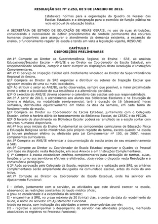 Esta resolução estabelece normas para a organização do quadro de pessoal e designação de funções na rede estadual de educação de Minas Gerais. Ela define a carga horária obrigatória para professores e outros cargos, critérios para atribuição de turmas, aulas e funções, priorizando professores efetivos e habilitados. A resolução também trata de servidores em ajuste funcional e acúmulo de cargos.