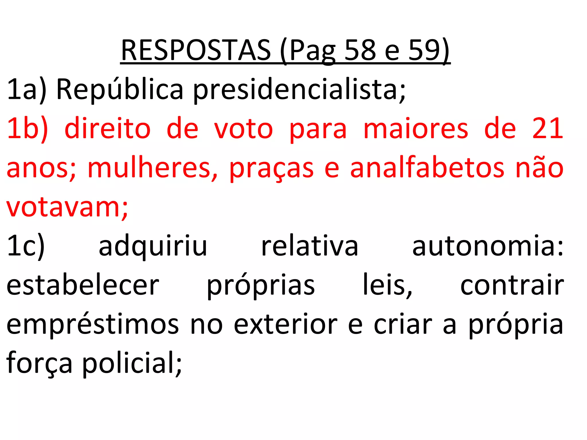 O documento descreve aspectos da Primeira República Brasileira, incluindo a adoção de um sistema presidencialista e laico e o direito ao voto restrito. Também discute a política do café com leite entre São Paulo e Minas Gerais e o poder dos coronéis locais. Finalmente, menciona movimentos sociais como o cangaço que surgiram devido à pobreza e abandono do governo.
