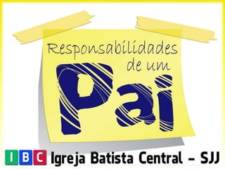 O documento discute as responsabilidades de ser um pai cristão, enfatizando a importância de (1) servir de exemplo para os filhos através da própria conduta, (2) encontrar tempo para passar com os filhos, priorizando-os sobre outras tarefas, e (3) equilibrar a correção com o encorajamento na educação dos filhos.