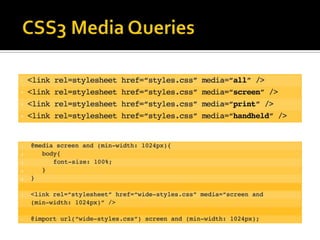 O documento discute o design responsivo para websites, propondo uma abordagem flexível com grid, imagens e media queries que permitem a adaptação do layout a diferentes telas. O design responsivo garante que a web seja acessível em qualquer dispositivo.