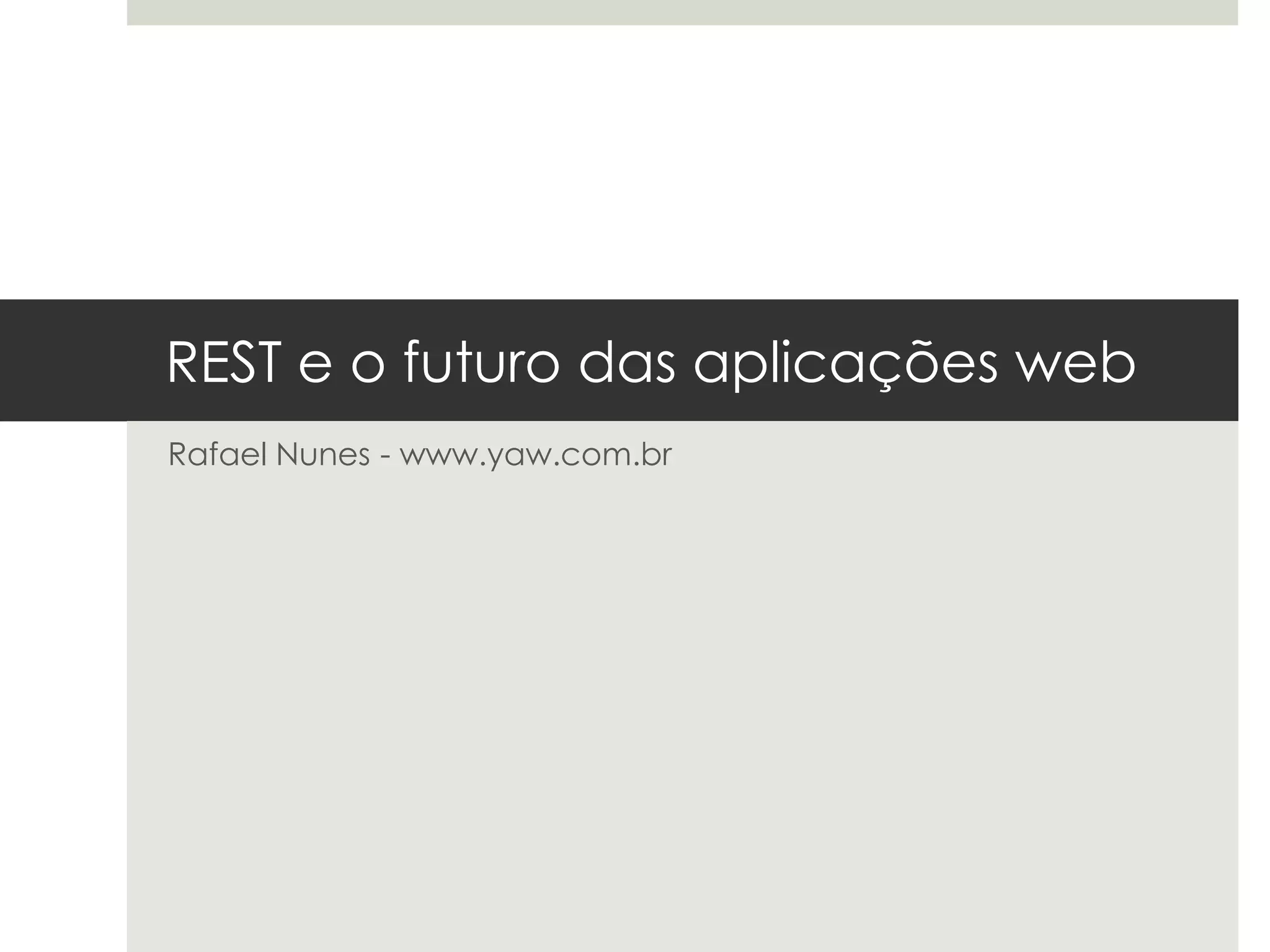 O documento discute como REST é fundamental para o futuro das aplicações web. Ele explica os principais conceitos de HTTP como protocolo stateless e síncrono e como REST utiliza os verbos e status codes do HTTP. Também discute como REST pode ser usado como camada web, de integração e serviços, com exemplos de cada caso. A conclusão é que REST é principalmente sobre simplicidade e possibilidades.