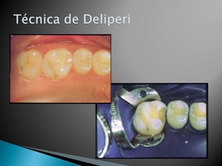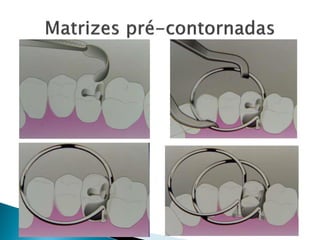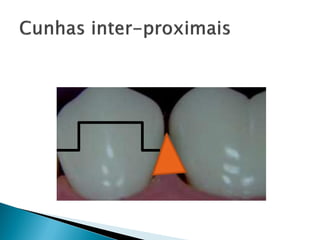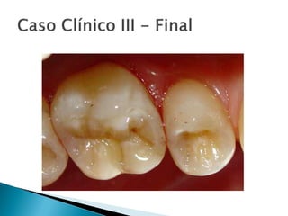 O documento discute conceitos fundamentais de colorimetria dental e técnicas de restauração direta, incluindo: 1) As três dimensões da cor - matiz, croma e valor; 2) Sistemas adesivos e proteção do complexo dentino-pulpar; 3) Técnicas de confecção e fotopolimerização de restaurações diretas.