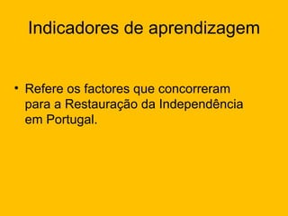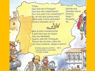 A Espanha passou por uma crise econômica e social no século XVII e se envolveu na Guerra dos 30 Anos, necessitando recrutar tropas e lançar mais impostos. A sociedade portuguesa estava descontente com o domínio filipino devido ao aumento de impostos, recrutamento de tropas, envolvimento em guerras e quebra de promessas. Em 1o de dezembro de 1640, a nobreza aproveitou as dificuldades da Espanha para restaurar a independência de Portugal.