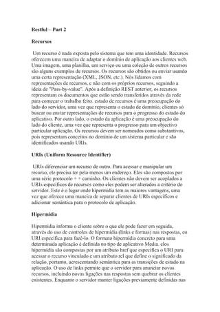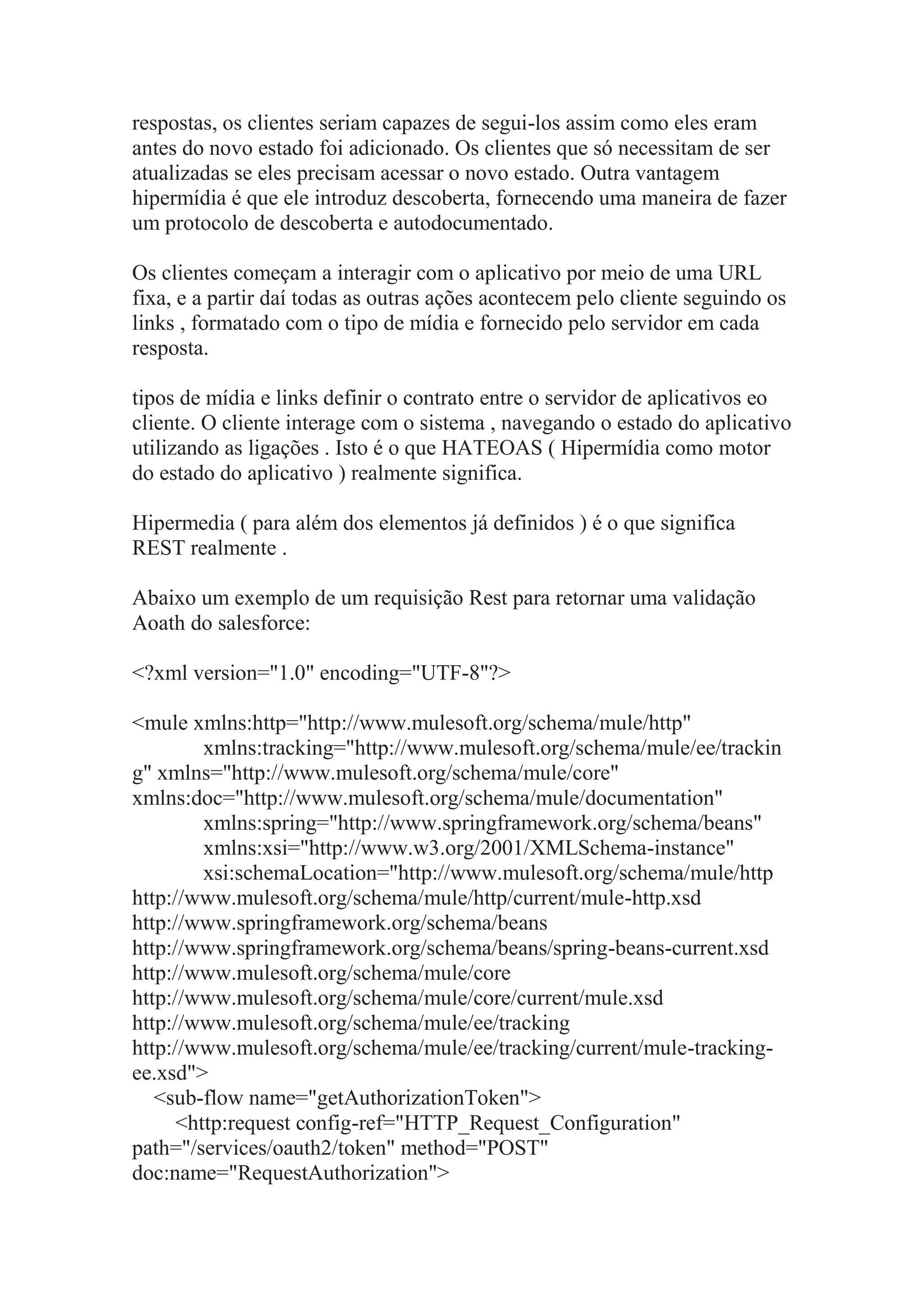 1) O documento descreve como fazer requisições REST para validar tokens OAuth e executar consultas no Salesforce usando URIs, parâmetros de consulta e cabeçalhos HTTP. 2) Ele fornece um exemplo XML de um fluxo Mule que obtém um token de acesso do Salesforce e o usa para executar consultas Wave. 3) O fluxo inclui etapas para definir cargas úteis SAQL, enriquecer variáveis de fluxo e registrar resultados.