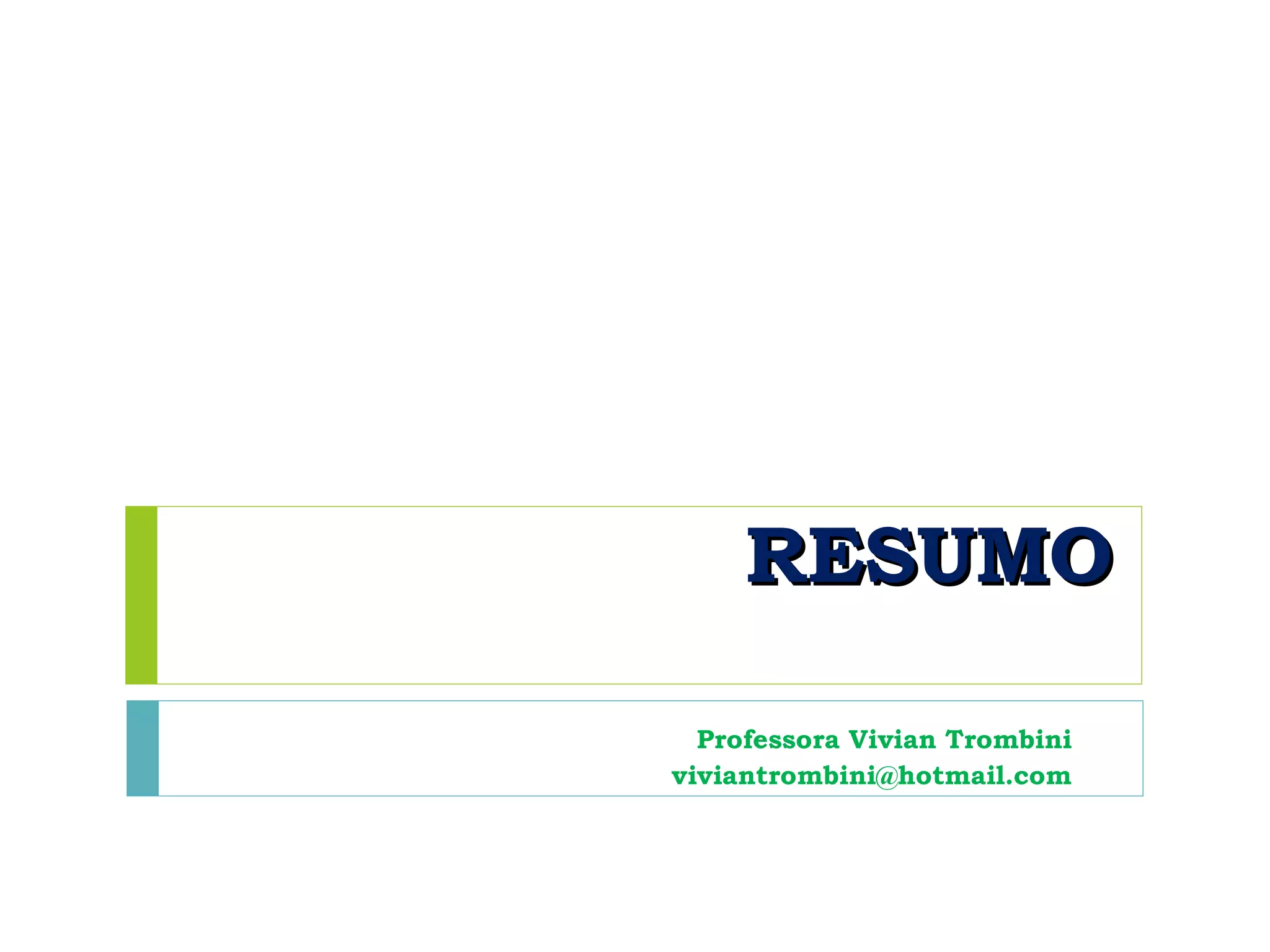 O documento apresenta características gerais para a elaboração de resumos, como começar com uma referência ao texto original, fazer referências ao autor a cada período e manter a sequência das informações. Também discute a estrutura de um resumo, que deve conter dois parágrafos no máximo e usar a terceira pessoa, sem opiniões pessoais. Por fim, lista passos para elaborar o resumo, como ler o texto completamente e fazer uma segmentação em blocos de ideias.