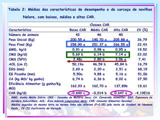 O documento discute o consumo alimentar residual como uma medida alternativa de eficiência alimentar em bovinos de corte. Ele explica que o consumo alimentar residual é calculado subtraindo-se o consumo observado do consumo estimado com base no peso vivo médio, ganho médio diário e composição corporal. Animais mais eficientes tendem a ter consumo alimentar residual negativo. A seleção para baixo consumo alimentar residual tem potencial para melhorar a eficiência alimentar de forma independente de outros fatores.