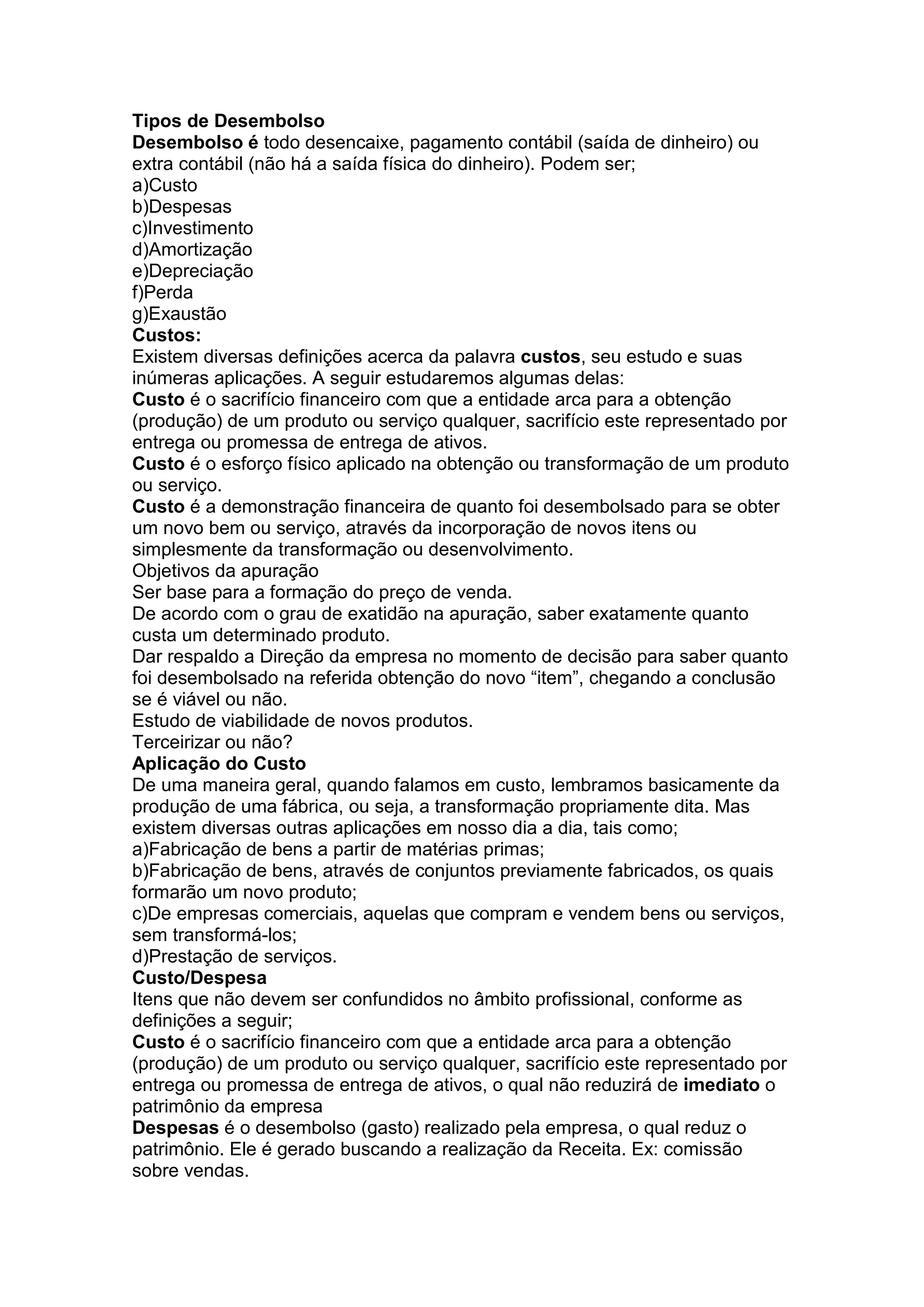 O documento discute diferentes tipos de custos e despesas, métodos de controle de estoques e formação de preços. Ele explica a diferença entre custos e despesas, tipos de custos como diretos, indiretos, fixos e variáveis, e métodos de custeio como custeio por departamentos, por ordem de produção e custeio-padrão.