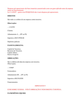 Lei 11.638/07 – gastos com PESQUISAS não é mais despesas pré-operacionais.