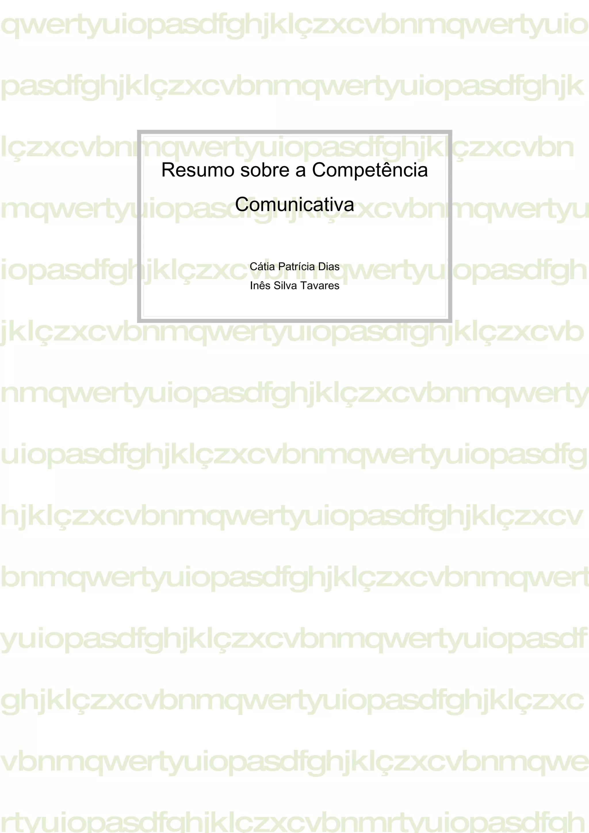 Este documento apresenta um resumo sobre a competência comunicativa. Define a competência comunicativa como o conhecimento das regras psicológicas, culturais e sociais que regem a utilização da fala em contextos sociais. Discute três tipos de competências comunicativas: linguística, sociolinguística e pragmática.