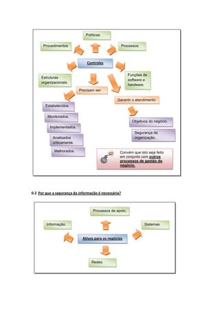 O documento apresenta uma introdução sobre segurança da informação, definindo o que é, por que é necessária e como estabelecer requisitos. Apresenta também os principais pontos para o início de um programa de segurança, como política, atribuição de responsabilidades, conscientização e análise de riscos.