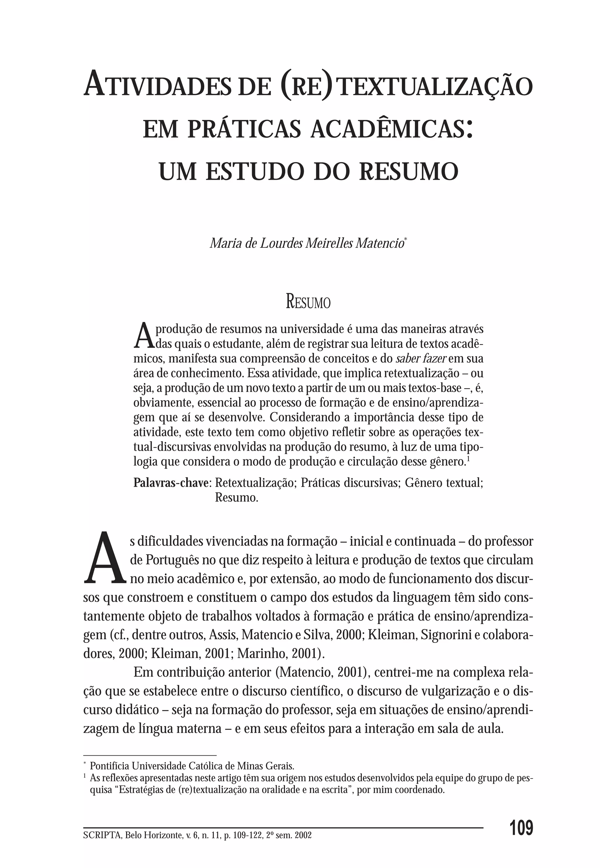 Este documento discute a atividade de produzir resumos em práticas acadêmicas. Ele analisa as operações textuais e discursivas envolvidas na produção de resumos a partir de textos originais, destacando a importância dessa atividade para a formação de estudantes e a construção de conhecimento.