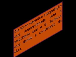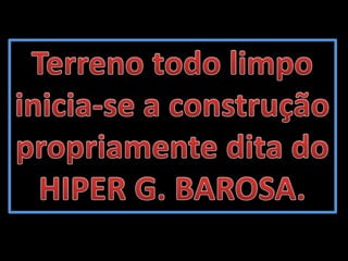 O grupo G. Barbosa adquire terras para construir um hipermercado. As obras estão adiantadas até que o prefeito embarga a construção por falta de autorização. A população fica perplexo com a decisão que prejudica o empreendimento. Por fim, G. Barbosa reinicia as obras e conclui o hipermercado.