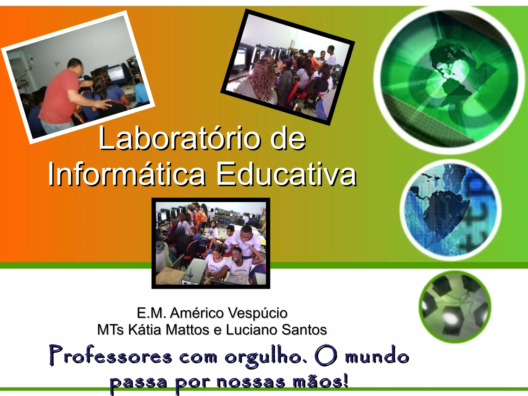 O documento descreve o laboratório de informática educativa da Escola Municipal Américo Vespúcio, incluindo seus horários, equipamentos disponíveis como computadores, TV e impressora, coleções didáticas, acesso à internet, suporte técnico e pedagógico oferecido aos professores e produções realizadas como site, blogs, jornal e revista eletrônica.