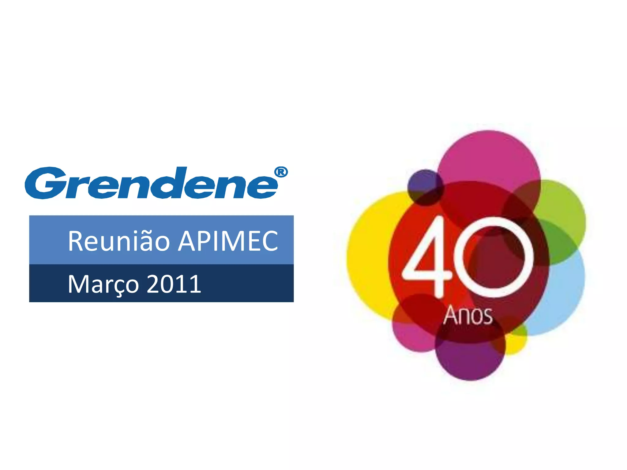 O documento apresenta uma reunião da APIMEC em março de 2011. Contém informações sobre a história, estrutura, instalações, processos produtivos, sustentabilidade, setor de calçados e estratégia da Grendene. Apresenta também resultados e perspectivas futuras da empresa.
